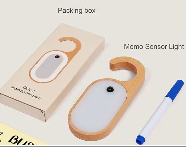 The Body Sensor Light Message Board Wooden Soft Lamp Night Light is a versatile and creative lighting solution designed for bedside tables, kitchen cabinets, and other indoor spaces. This wooden lamp features a soft, gentle glow and a built-in body sensor that automatically turns the light on and off in response to movement. The message board adds a functional touch, allowing you to jot down notes or reminders. With its creative hook design, this lamp can be easily hung or placed in various locations, providing convenient lighting wherever you need it.