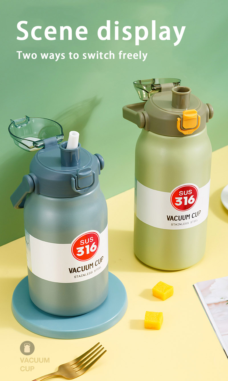 Introducing the 1000ml Vacuum Insulated Stainless Steel Water Bottle, perfect for keeping your beverages hot or cold on the go. This thermos flask comes with a convenient straw for easy sipping, making it ideal for outdoor activities and everyday use. The stainless steel construction ensures durability, while the vacuum insulation maintains the temperature of your drinks for extended periods. Whether you’re hitting the gym or heading out for a hike, this water bottle is a reliable companion for staying hydrated.