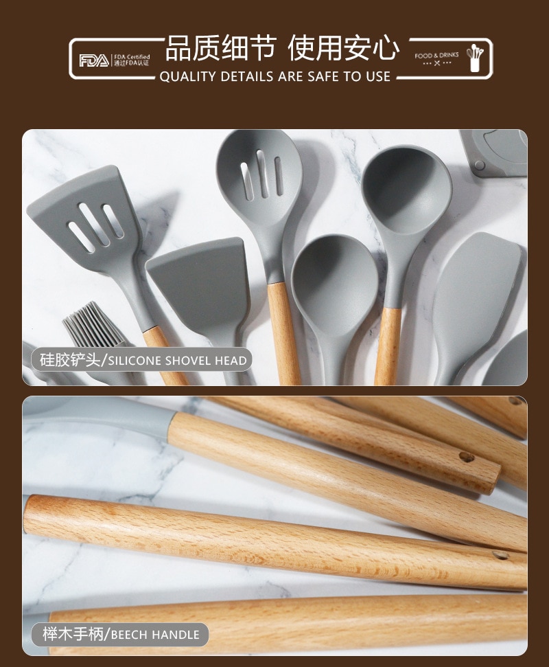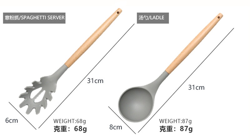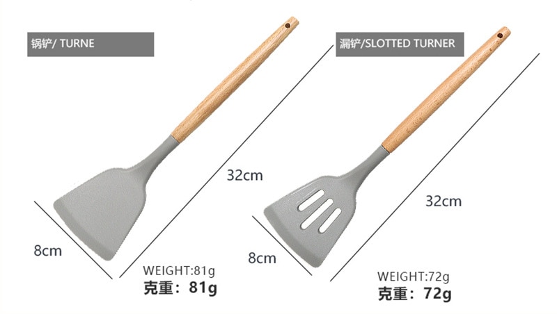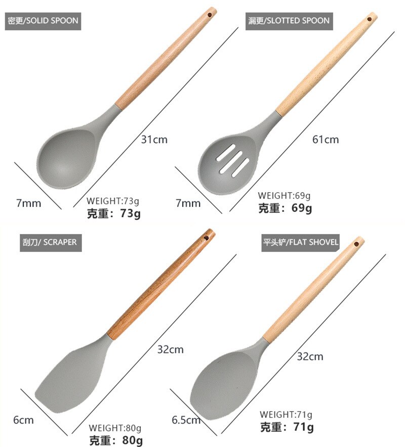 Silicone Kitchen Ware Set with Wooden Handle High Quality Non-stick Spatula Cooking Utensils
