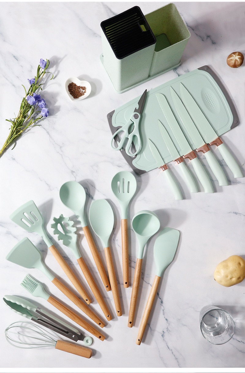 Be the first to review “19PCS Silicone Kitchenware Cooking Utensils Set Non-stick Cookware Spatula Shovel Egg Beaters Wooden Handle Kitchen Cooking Tool”