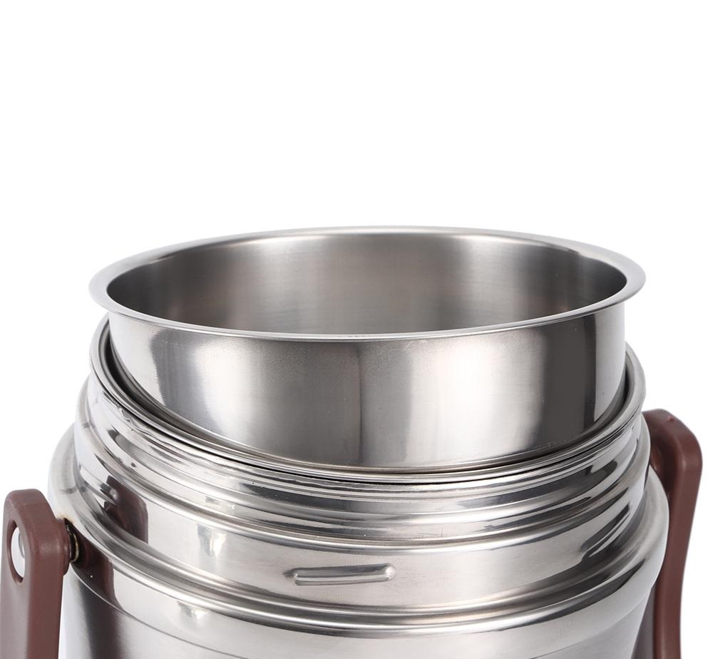 A double‑walled, vacuum‑insulated container made from food‑grade 304 stainless steel. It keeps meals hot for up to 12 hours or cold for 8 hours, thanks to the sealed vacuum layer. The wide opening makes it easy to fill and clean, while the built‑in silicone gasket and leak‑proof lid prevent spills. A sturdy roof‑style handle and a secondary snap‑lock lid add convenience for carrying.