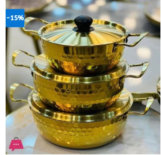Each pot features a well-designed double handle for easy handling and a matching lid to retain heat and flavour. The round shape ensures even heat distribution, making every meal cooked to perfection. The set’s ease of cleaning and argent finish add a touch of elegance to your cookware collection.