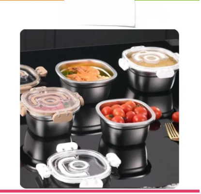 – Set of 3 stainless steel containers with lids and handles