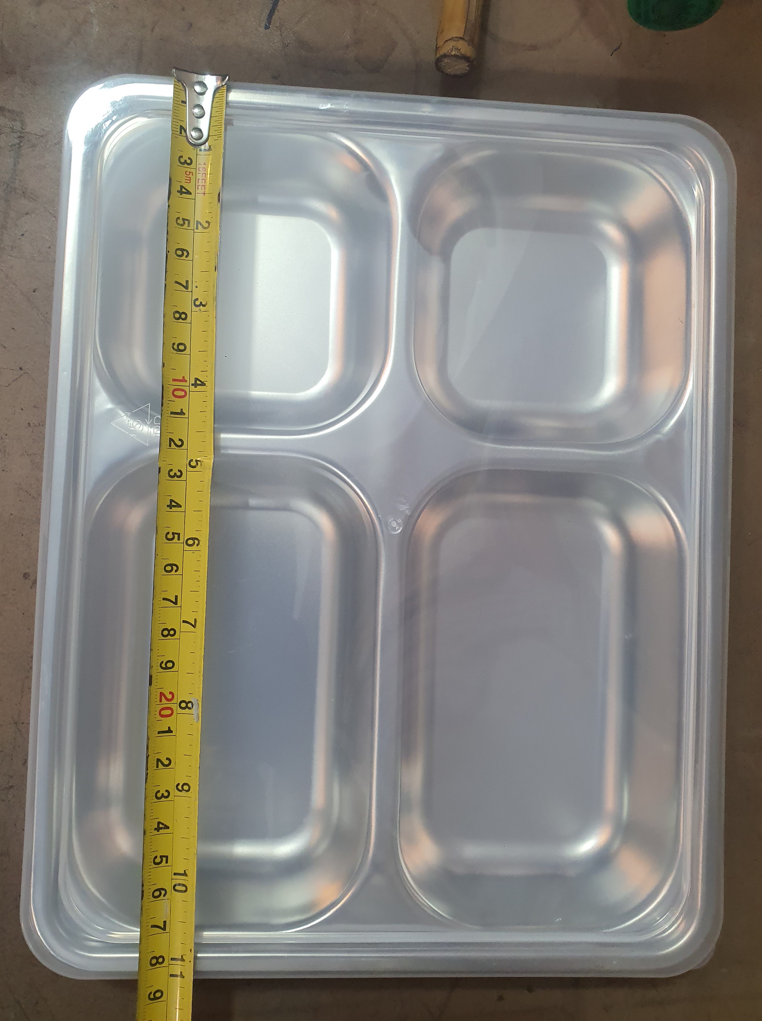 Introducing the 4 Compartments Stainless Steel Plate with Lid, a versatile addition to your kitchen and dining collection. Crafted from high-quality stainless steel, this rectangular thali plate features 4 compartments, making it perfect for serving a variety of dishes in one convenient tray. Whether you’re hosting a dinner party or simply enjoying a family meal, this divided dinner plate is ideal for serving nuts, snacks, or a selection of appetizers. With its durable and imported design, this 4 compartment serving tray is a must-have for any kitchen. This stainless steel plate with lid is a practical and stylish solution for serving and organizing meals, ensuring a delightful dining experience for your guests and family. The lid provides added convenience for storing leftovers or keeping the food fresh, making it an essential addition to your serveware collection. Elevate your dining experience with this high-quality and versatile stainless steel thali plate, designed to meet your serving and presentation needs with ease and elegance.