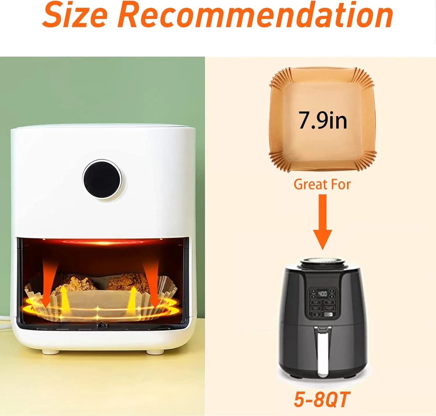 ✅The heat is generated by air circulation from the pan’s wall, and it won’t affect the air circulation by using disposable paper liners. When baking, the grease comes out to the paper liner, giving you healthier foods.