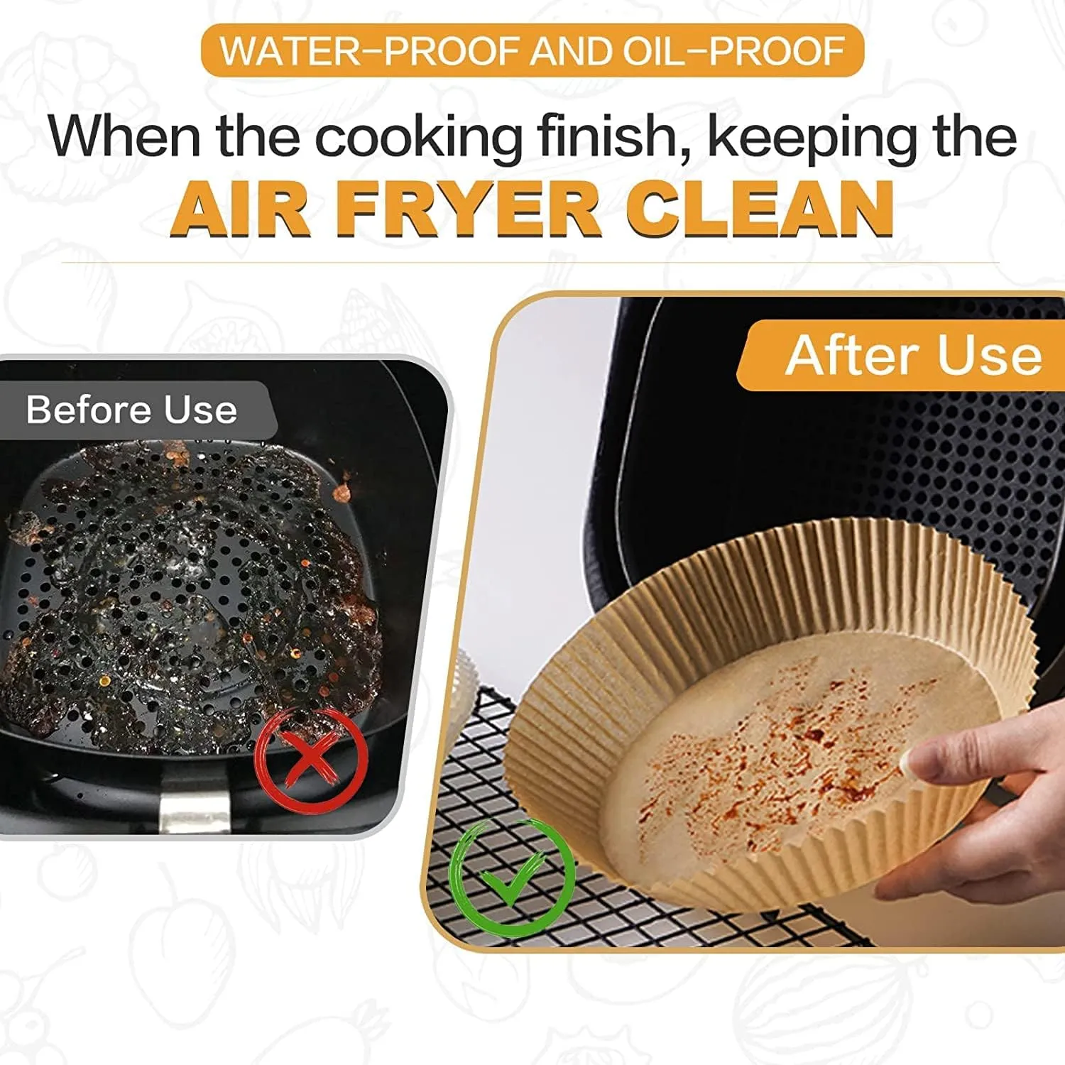 ✅These disposable paper liners can effectively keep food residue away from the fryer and make it as clean as unused, saving time and effort. These paper liners are a must-have if you hate cleaning after baking.