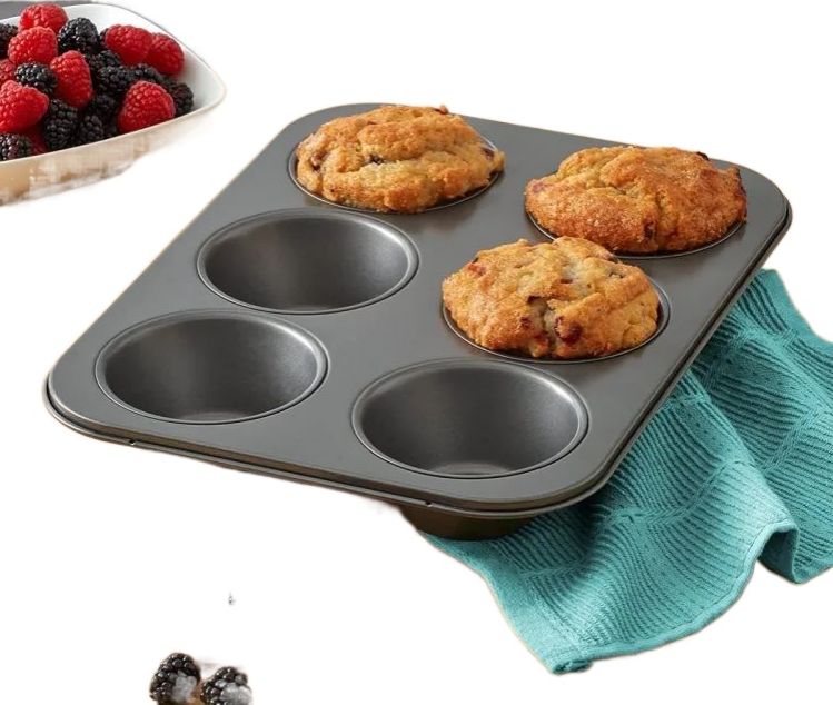 6 Cups Muffin Pan Baking Tray Top Non Stick Bakeware Cakes and Cupcakes Made of Aluminum Heat Resistant Black