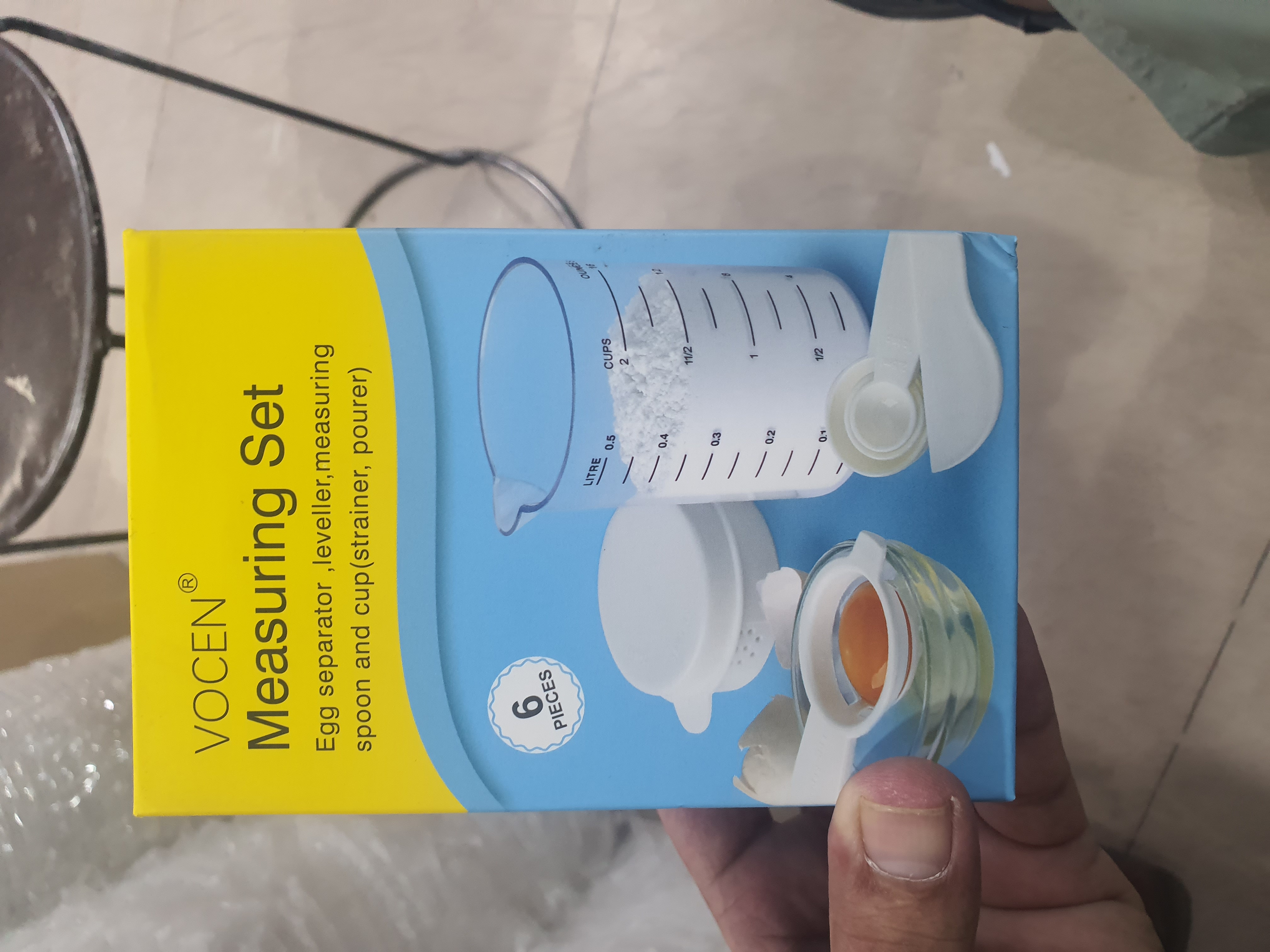 500ml jug with spout; Egg separator’ Leveller; 3spoons (1/2 tsp’ 1tsp; 1tbsp capacify) specially designed
