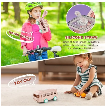 TOY BUS WATER BOTTLE: Our water bottle with straw is not just a water bottle, but also a toy with wheels that can turn When carried on the body, the water bottle will be an accessory that little ones will be envious of, making your child fall in love with drinking.
