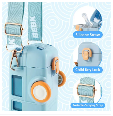 ADJUSTABLE SHOULDER STRAP: Water cups for kids come with an adjustable removable shoulder strap, you can adjust different lengths for kids and adults. The portable water bottle can be carried shoulder, and it is very convenient to carry a water glass with you, suitable for travel and outdoor sports.
