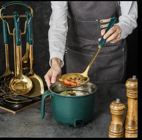 Our kitchen cookware kit come with a utensil holder, allowing every cooking tools to be perfectly placed, keeping everything in order. These quality kitchen gadgets are easy to clean, just wash them with water or throw them in the dishwasher to have a gleaming set.