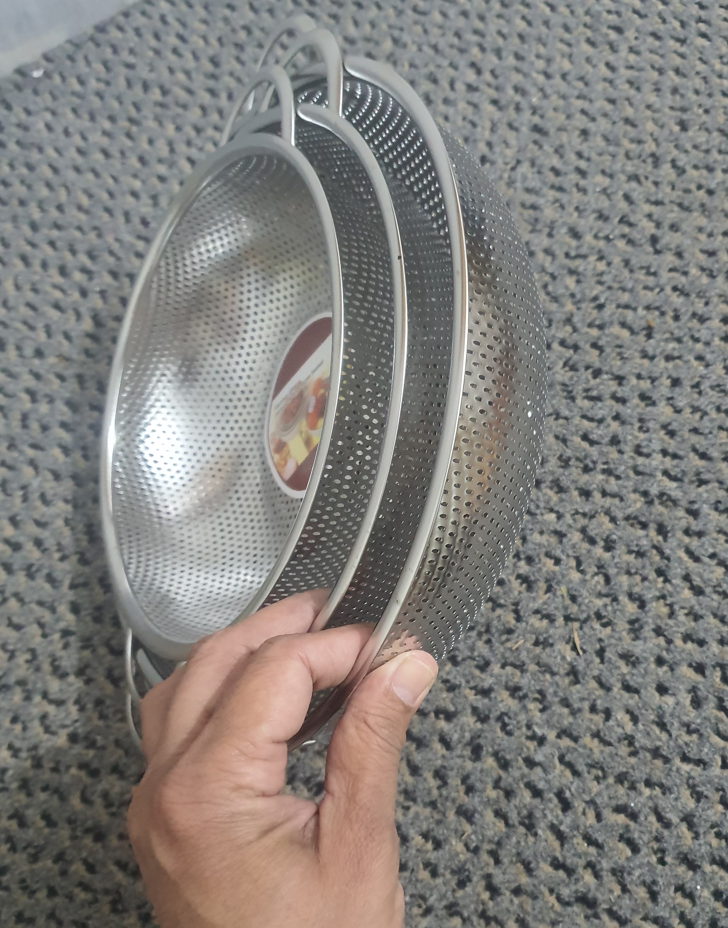 Introducing the Multipurpose Stainless Steel Colander Set, featuring three pieces in
