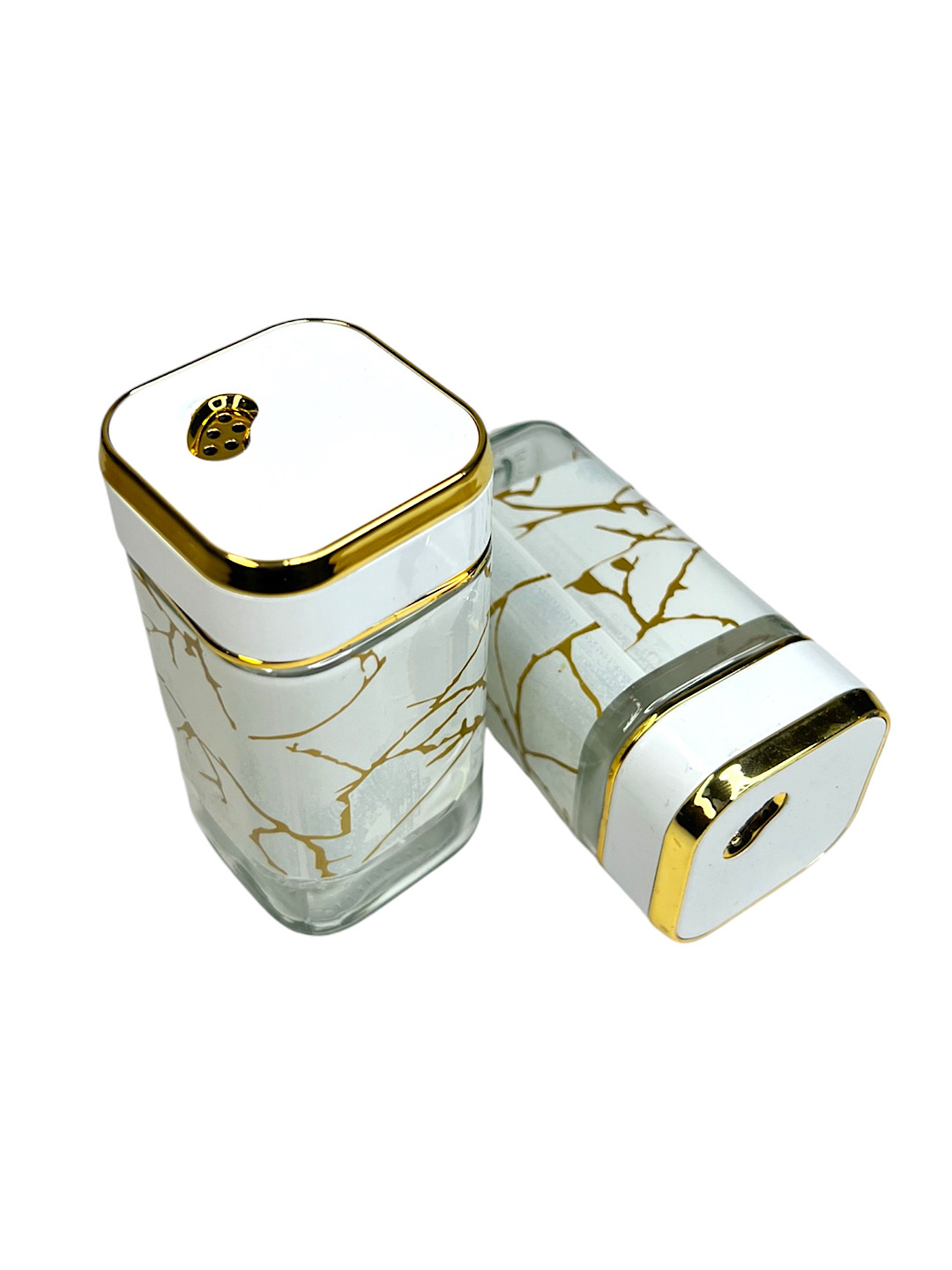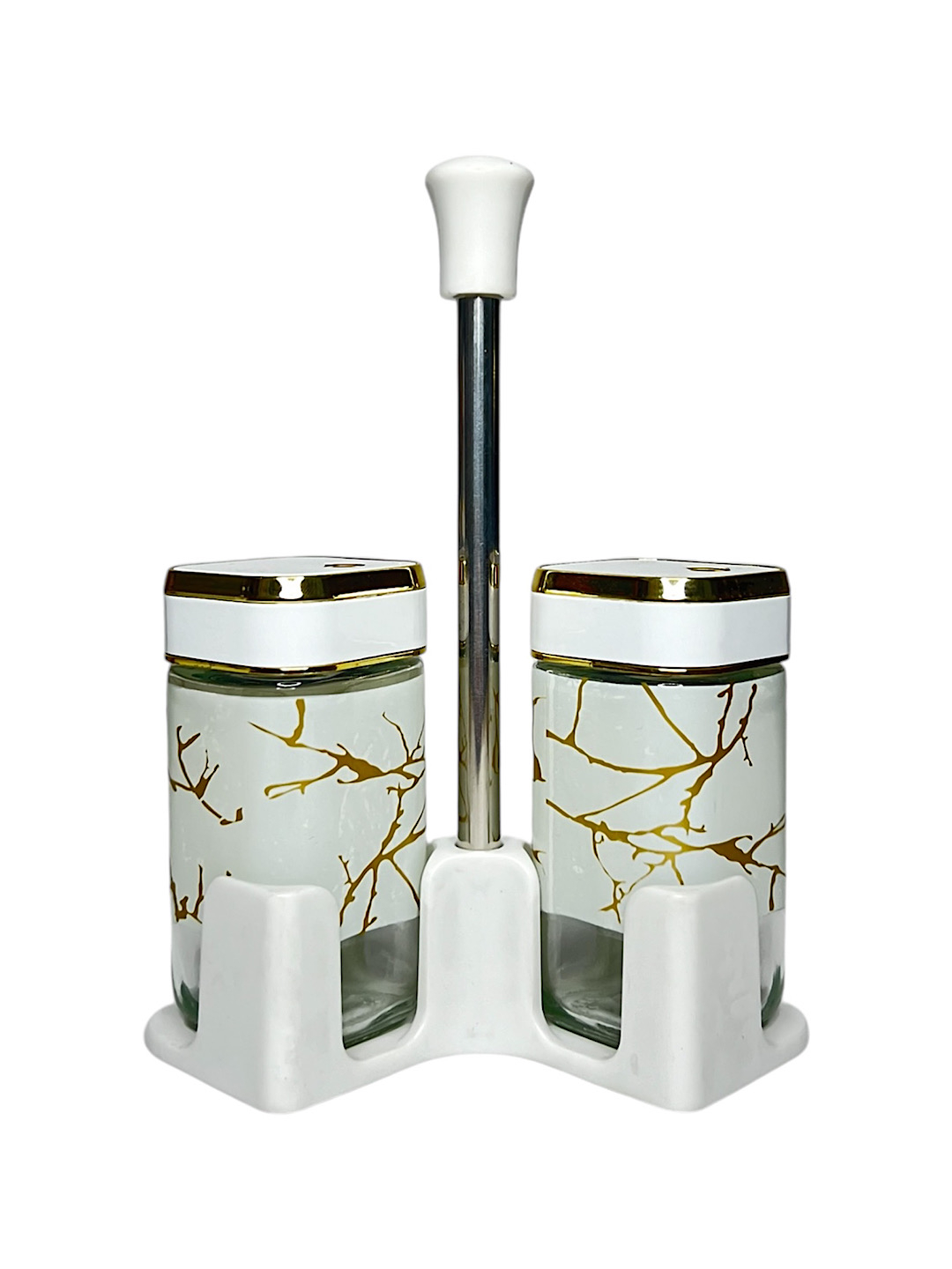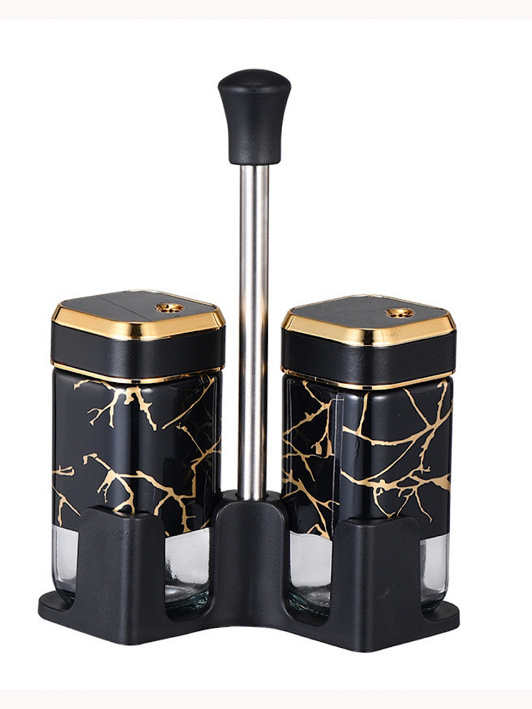 Square Salt & Pepper Set Spice Rack Organizer, Countertop Seasoning Holder with 2 Glass Square Jars, stylish and unique design