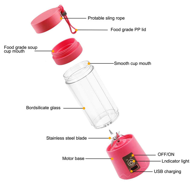 First, charging: the first use to charge more than 3 hours, 8 hours is better, otherwise it is easy to power shortage or not.Second, tighten: the cup body and the base must be tightened to rotate, because the cup body and the base have an invisible protection switch, only the cup body can be tightened to reach the convenient working state.Third, fruit: fruit must be cut into small pieces of 1.5 cmFourth, add water: After putting the fruit, you must add one-half of the water or milk of the amount of fruit, do not dry, easy to burn the motor. (Unless you have a lot of water, such as watermelon, you don’t need water).