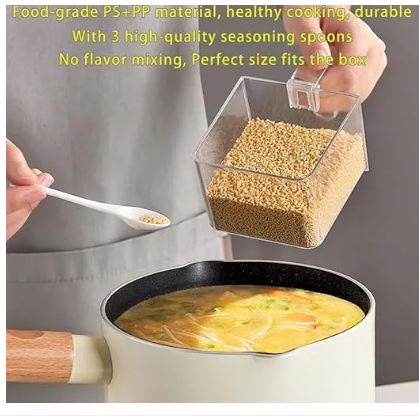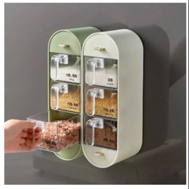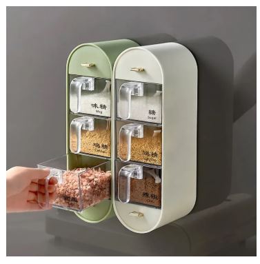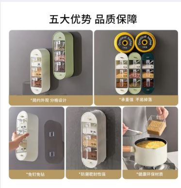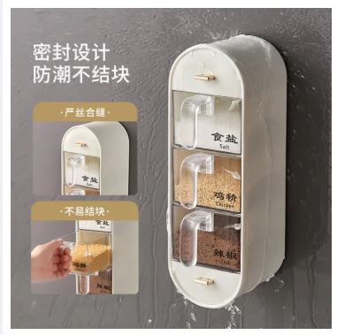 This kitchen seasoning storage box features multiple grids for organizing various seasonings, including salt and monosodium glutamate. The wall-hanging design saves counter space and keeps your kitchen tidy.