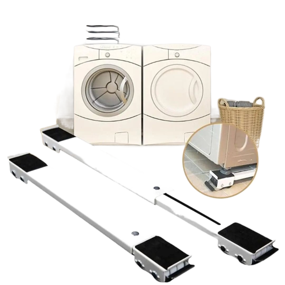 ★[Good home helper]: Multifunctional movable base bracket, suitable for the bottom of washing machines and dryers, freezers and refrigerators, suitable for any floor, Can also be used to move furniture and household appliances. ★[Unique design ]: Telescopic base The adjustable length of each base is 45cm(17.7inch) to 70cm(27.5inch) and the base height is 4cm(1.57inch), width is 5cm(1.96inch). universally applicable to various models washing machines. The maximum load capacity is 661 pounds(300kg). ★[Detail Design]: The appliance rollers are equipped with 6 rollers on each side, and the rollers are equipped with brakes to facilitate movement and fixation. The surface of the base has a soft felt pad, which protects the surface of your precious furniture. ★[Daily Function]: Elevate the appliance through the appliance base to keep the bottom of the device ventilated, which is conducive to increasing the service life of the appliance, and at the same time, it is convenient for you to clean the bottom area of the device and keep the floor clean. ★[Noise reduction and Anti-Vibration]: This base is easy to assemble Place and use. it is equipped with black anti-vibration rubber pads, which can prevent slippage, stabilize the washer, reduce the noise, and prevent vibration during the washing and spinning process.